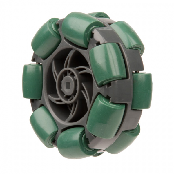 Omni-direccional ruedas giren hacia adelante, como las ruedas normales, pero de lado deslizamiento casi sin fricción (sin derrapar en las curvas). Use estos discos para que su robot gira con suavidad o construir un tren de transmisión holonómica. Estas ruedas son del mismo tamaño que la VEX 4 de diámetro. Ruedas.